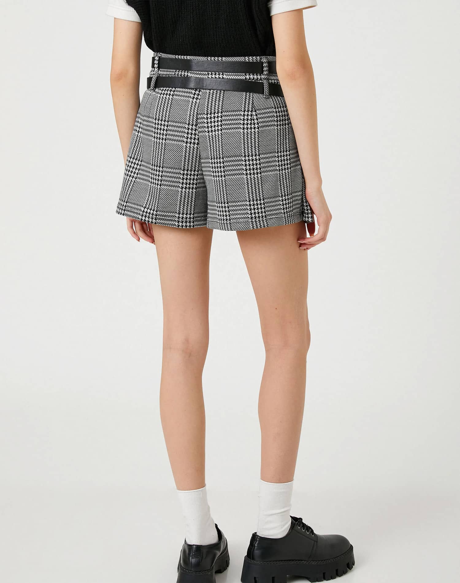 Short Skirt Double Belt Detailed Wide Pleated